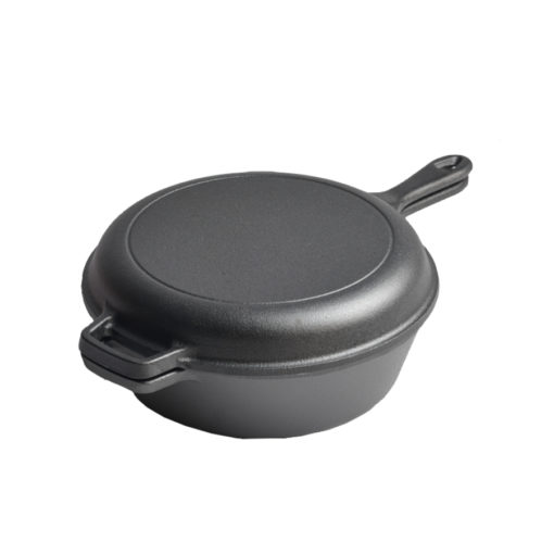 A termék tartalmaz egy tartós fedőt, amely lehetővé teszi az ételek lassú főzését és párolását. Az öntöttvas serpenyő fedővel egyaránt használható a tűzhelyen és a sütőben, így maximális rugalmasságot biztosít a konyhai munkák során. Sőt a fedő akár egy különálló serpenyőként is használható, így egyszerre két serpenyőt is kapsz.