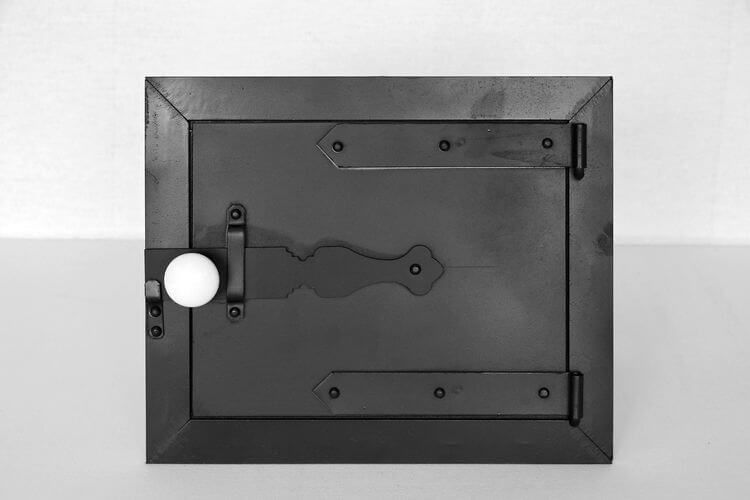 Acél parázsakna ajtó, porcelán gombbal ellátott zárószerkezettel van ellátva. Méreténél fogva megfelelő biztonsággal távolítható el a parázsaknában elhelyezett hamu és parázsmaradék. Indokolt esetben készülhet hővédő lemezzel is.