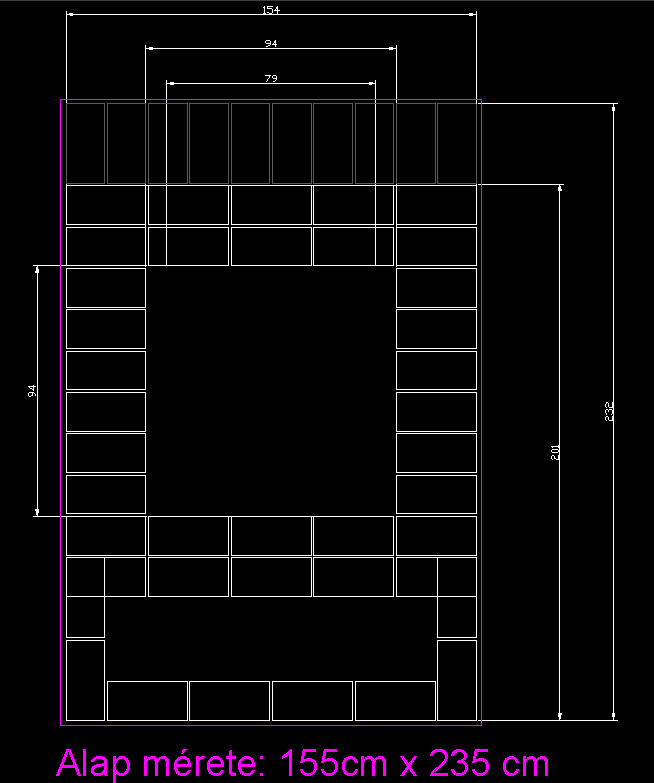 Ezért megfelelõ alapot kell biztosítani a kemence részére. Elõzetesen megrajzoltam az alaprajzot (letölthetõ), mely alapján megkezdtem az alap építését.
