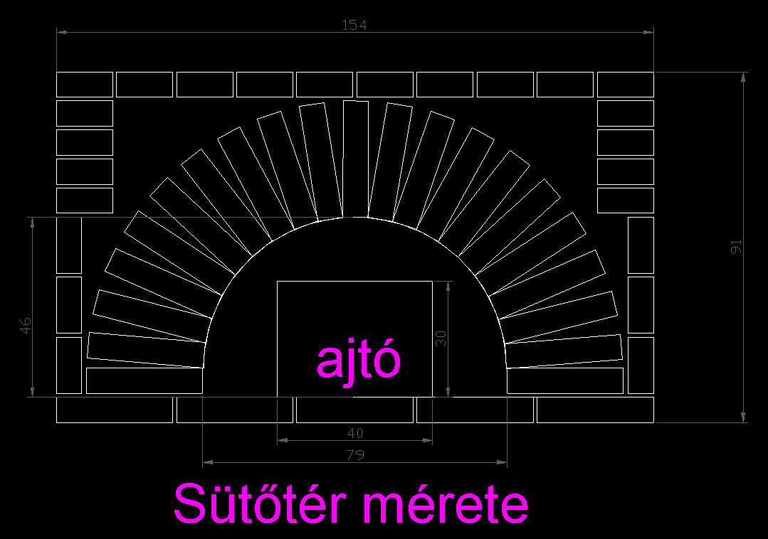Tehát visszatérve gondolatmenetemre, a Magas Bakonyban elterjedt dongaboltozatos kemence tervét vettem alapul, melyet átalakítottam saját elképzeléseimre (ugrás a látványtervre):